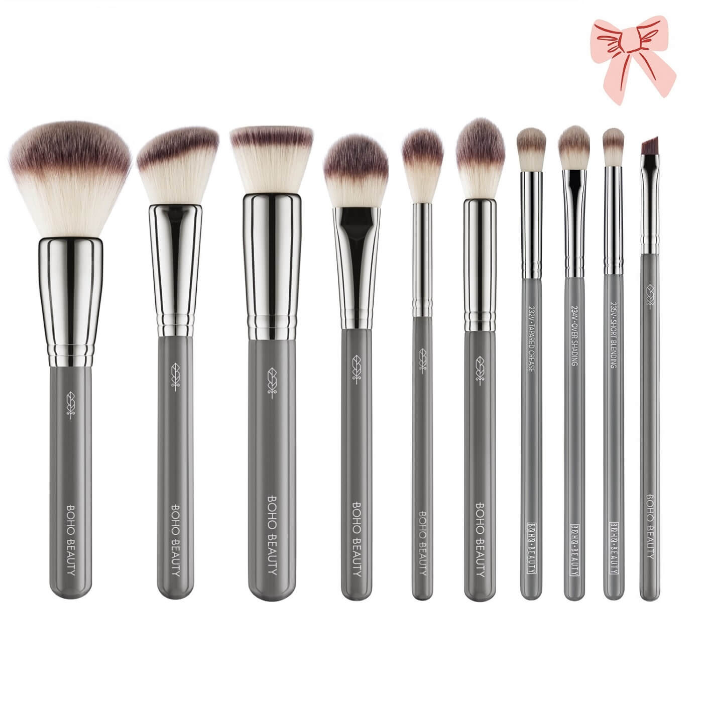 - Zestaw 10 wgańskich pędzli do makijażu twarzy i oczu spakowany na prezent.