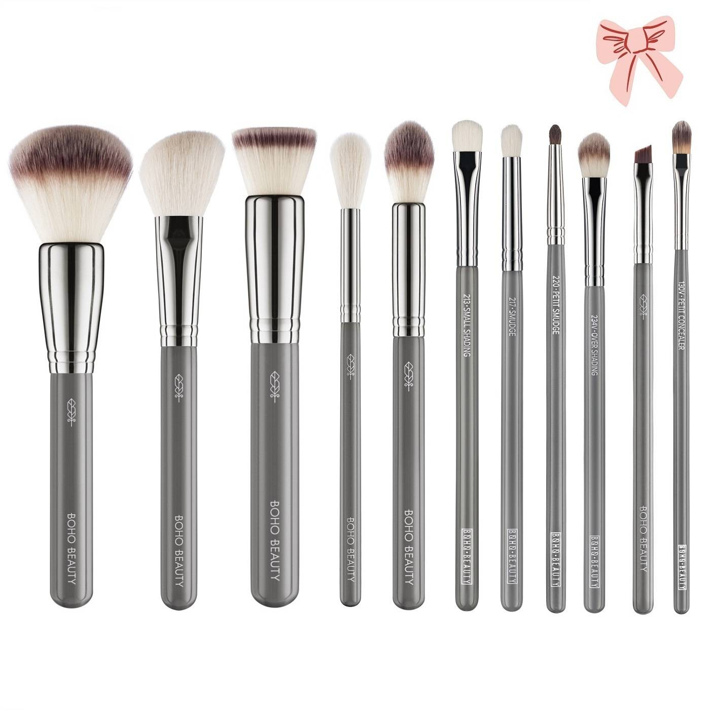 - Zestaw 11 pędzli do makijażu twarzy i oczu z włosia naturalnego i syntetycznego spakowany na prezent.